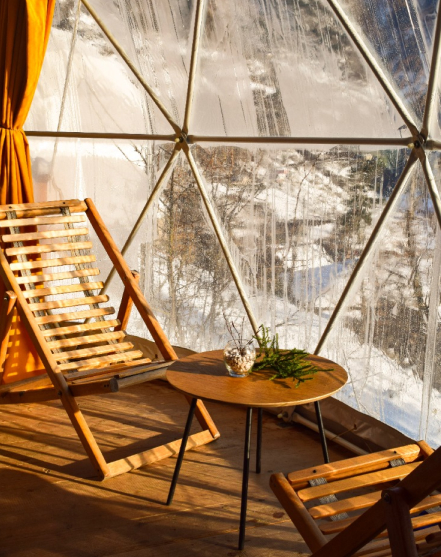 Els nostres glampings t’ofereixen la combinació perfecta entre l’encant del càmping tradicional i les comoditats d’un hotel de luxe. Després d’un dia d’aventures a la natura, tens l’opció de relaxar-te en un bungalou amb una part de sostre transparent, que t’ofereix una vista privilegiada del cel nocturn. Imagina’t estirat al llit, observant les estrelles mentre t’adorms enmig de la tranquil·litat dels paisatges naturals que t’envolten.